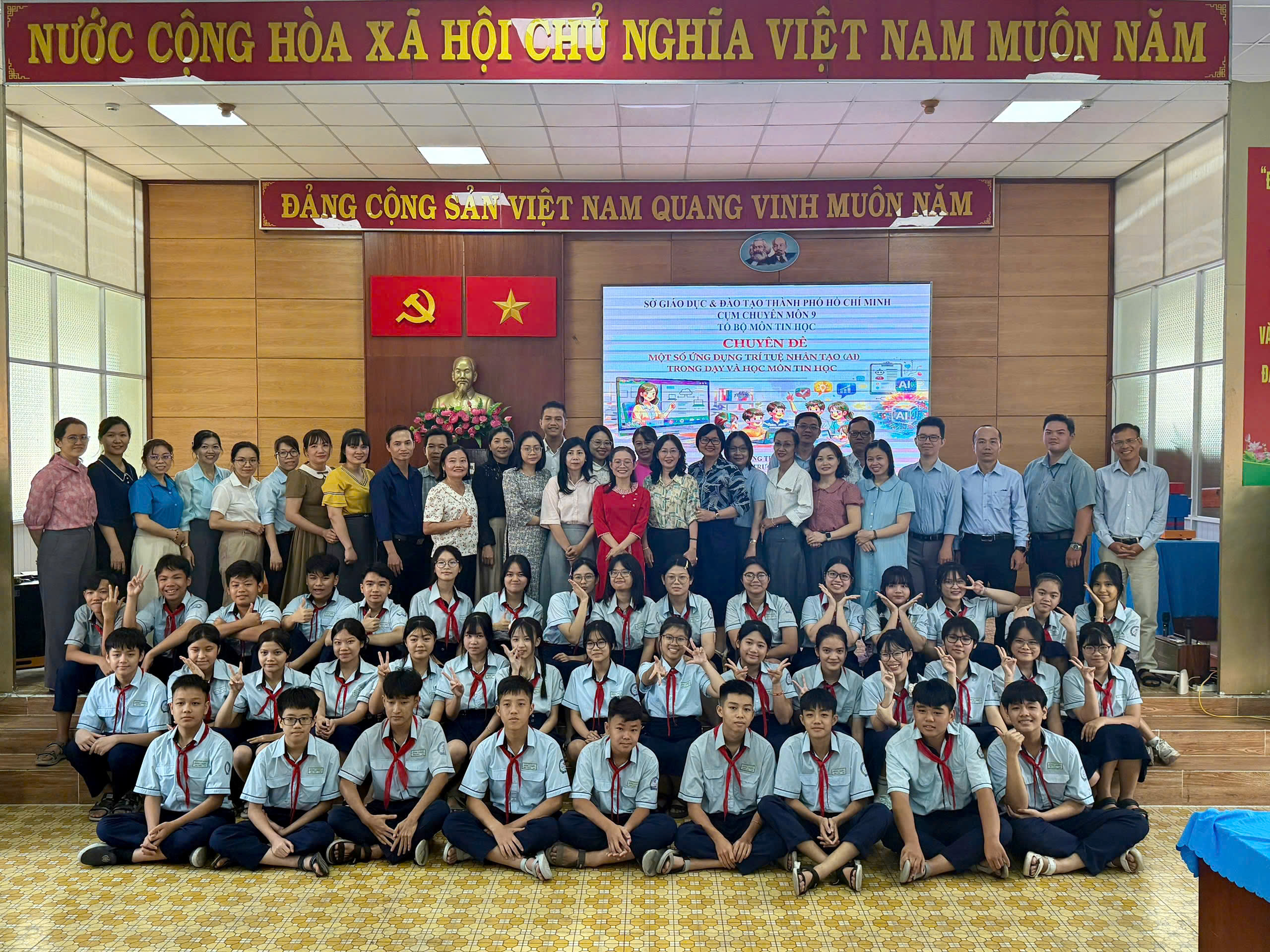 Nhằm đẩy mạnh ứng dụng chuyển đổi số và nâng cao chất lượng dạy học theo tinh thần đổi mới, vừa qua, bộ môn Tin học - Cụm chuyên môn 9 đã tổ chức thành công buổi sinh hoạt chuyên đề Học kì II - Năm học 2025 - 2026 với chủ đề: "Một số ứng dụng trí tuệ nhân tạo (AI) trong dạy và học môn Tin học cấp THCS"